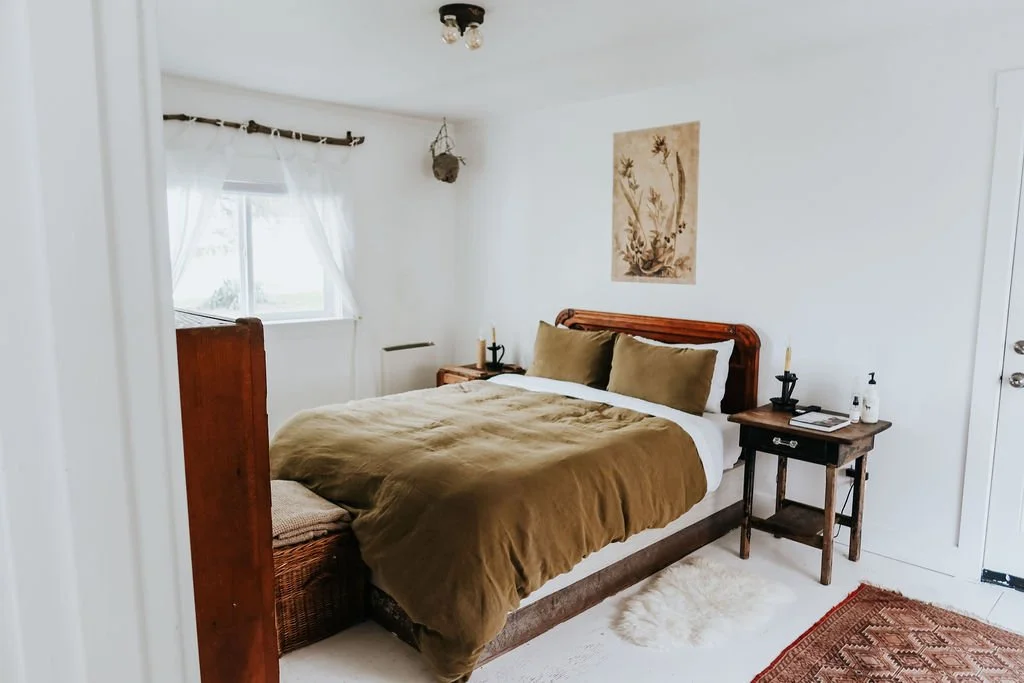 Each of the House Kinlands stays offers its own distinctive experience while reflecting the same thoughtful approach to design, comfort, and hospitality. Whether staying in the intimate Cottage, the spacious Big House, or the uniquely restored Moon House, guests will find spaces that balance old-world charm with modern comforts. Throughout each home, carefully curated furnishings, natural materials, and high-quality details—like comfortable organic bedding and timeless design elements—create a sense of warmth and ease. Surrounded by gardens, open land, and the gentle rhythm of life at The Kinlands, each property offers a memorable place to slow down, gather, and experience the beauty of a stay that feels both elevated and deeply welcoming.